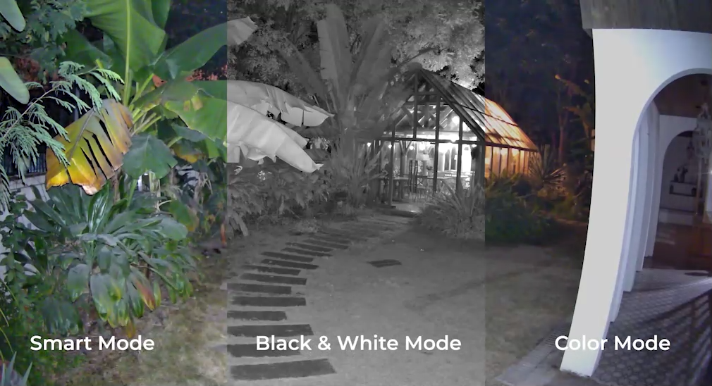 Switch between three night modes according to your need: Black & White Vision, Color Night Vision, and Smart Night Vision. With the Smart Night Vision enabled, the spotlight will be automatically triggered when motion is detected and everything will be captured in full-color.