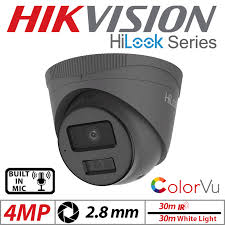 The HiLook IPC-T249HA-LU is a 4MP PoE turret IP camera with a 2.8mm or 4mm fixed lens. It features smart human detection, Hybrid Light technology, and a built-in microphone for added audio security.